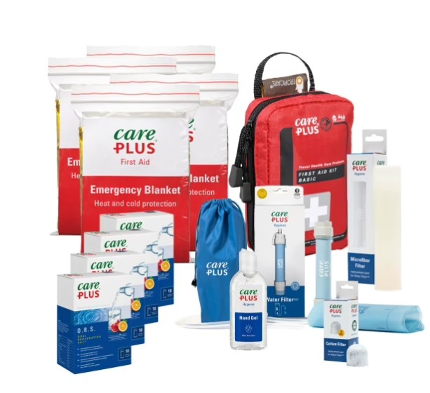 Het Noodpakket Large is de meest complete variant en biedt maximale voorbereiding. Het pakket bevat 4 verpakkingen Care Plus® O.R.S., een Care Plus® Water Filter Evo (1 stuks), 1 stuks CP® Hygiene Gel (100 ml), een Care Plus® First Aid Kit Emergency (48-delig), 4 stuks Care Plus® Emergency Blankets, plus reserveonderdelen: 1 Care Plus® Evo Replacement Micro Filter en 1 duopack Care Plus® Evo Replacement Carbon Filters. Ideaal voor avonturiers, professionals en als complete noodvoorziening thuis of op reis.