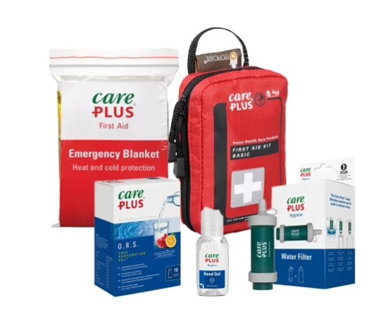Het Noodpakket Small is een compact en licht pakket met de belangrijkste noodvoorzieningen. Het bevat Care Plus® O.R.S. (1 verpakking) tegen uitdroging, een CP® Water Filter – Jungle Green (1 stuks) voor veilig drinkwater, CP® Hygiene Gel (100 ml), een Care Plus® First Aid Kit Basic (28-delig) en een Care Plus® Emergency Blanket. Ideaal als basisvoorziening onderweg, op reis of voor thuis.